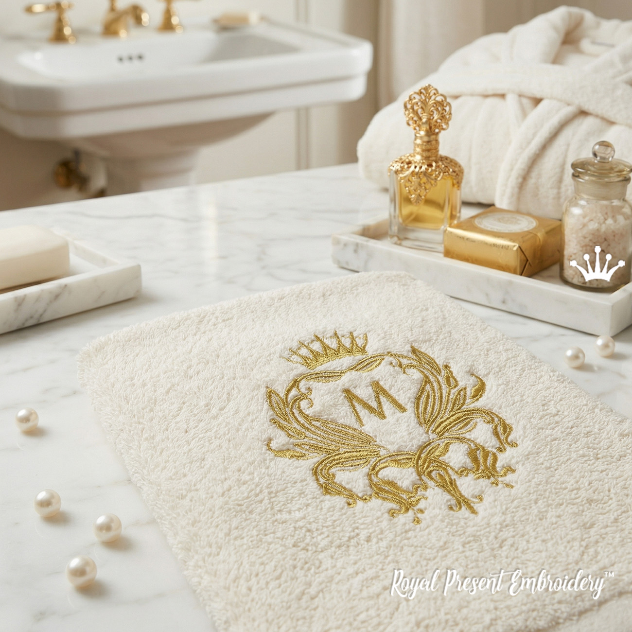 Этот потрясающий дизайн вышивки имеет сложную завитую рамку, окружающую выбранную вами букву. Структура была тщательно разработана со сложными деталями, которые добавляют глубину и текстуру, что делает ее действительно уникальной. Буква монограммы* в центре окружена изящными цветочными деталями, создавая вневременной образ, который никогда не выйдет из моды.