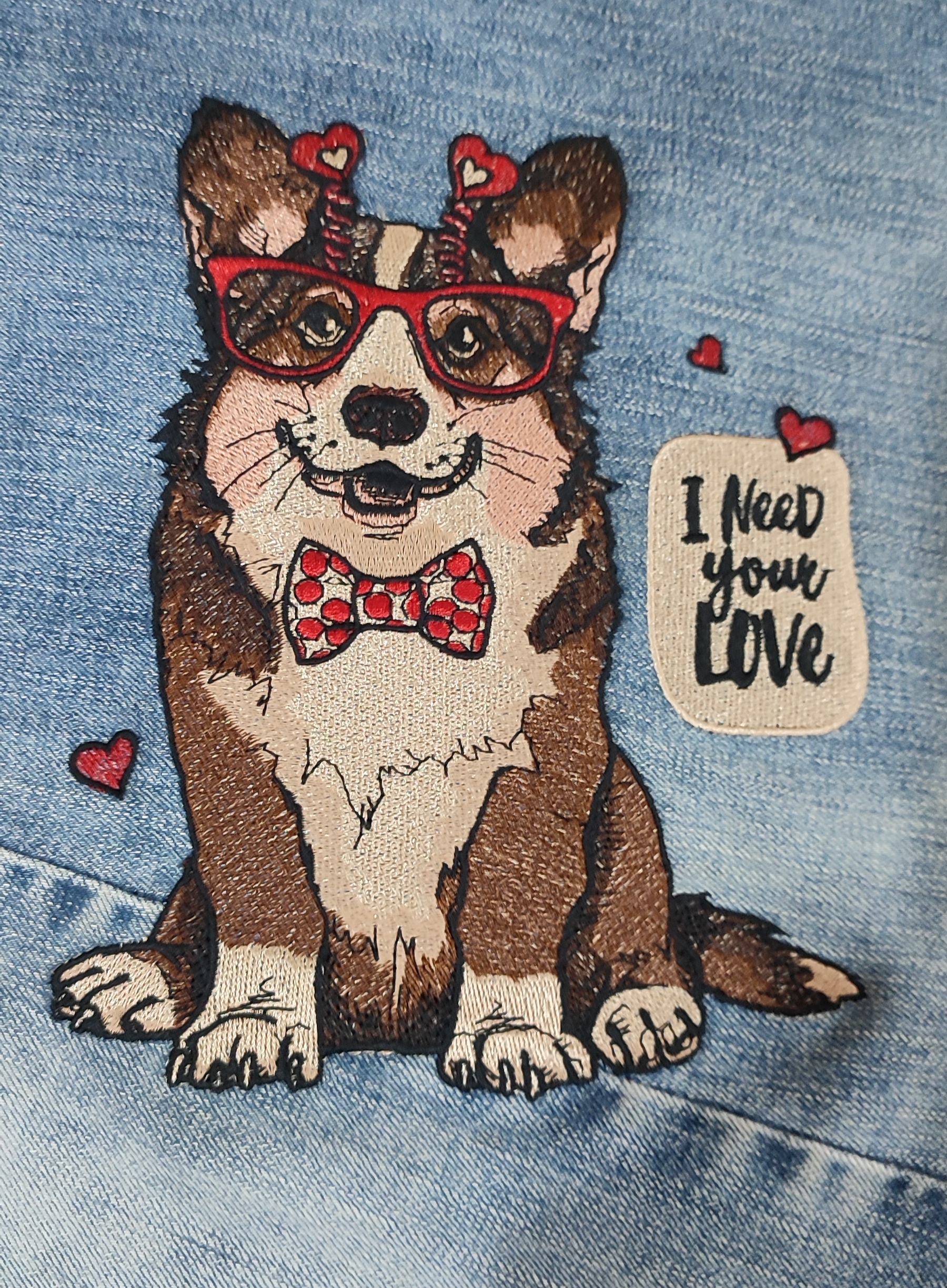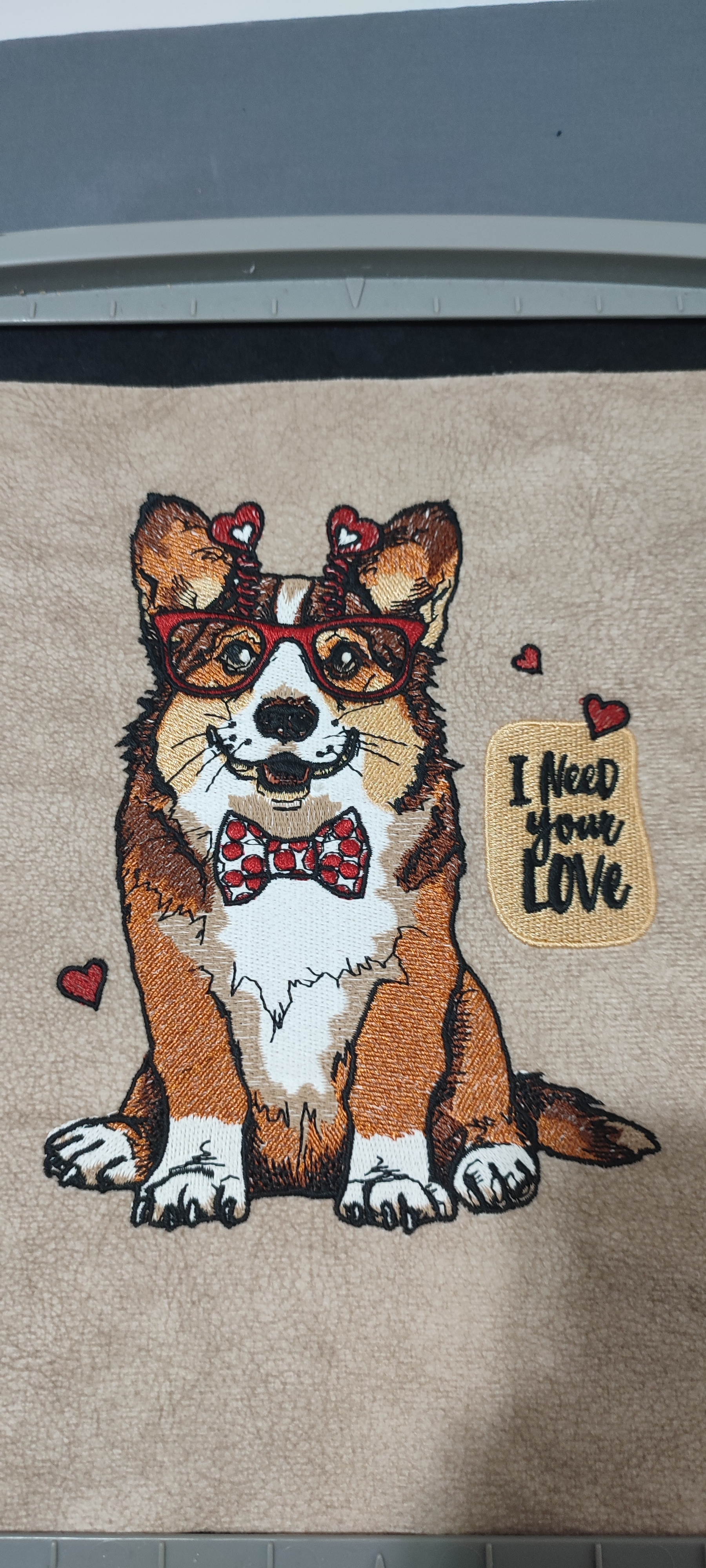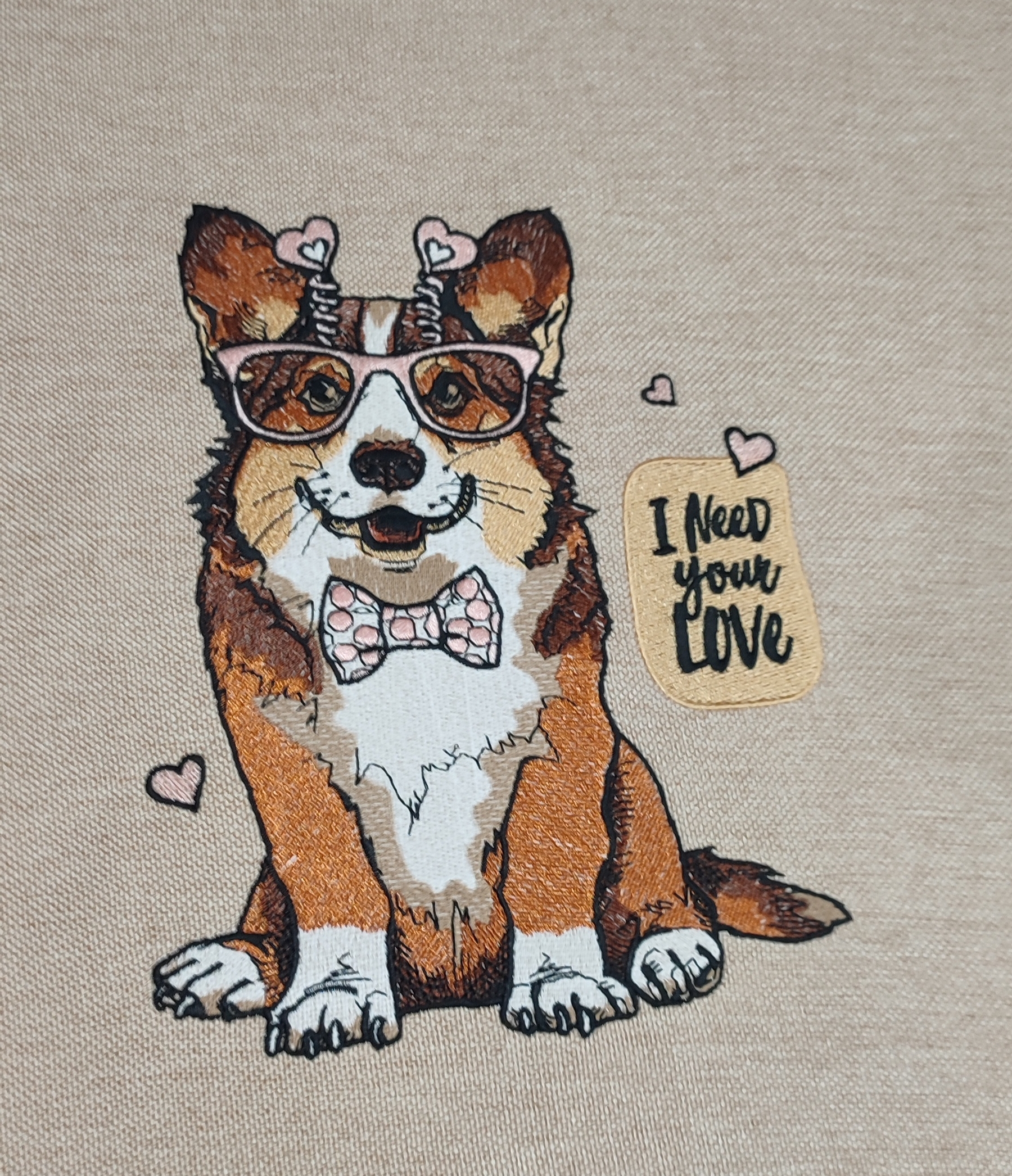 Щенок Корги Валентинка Дизайн машинной вышивки - 5 размеров