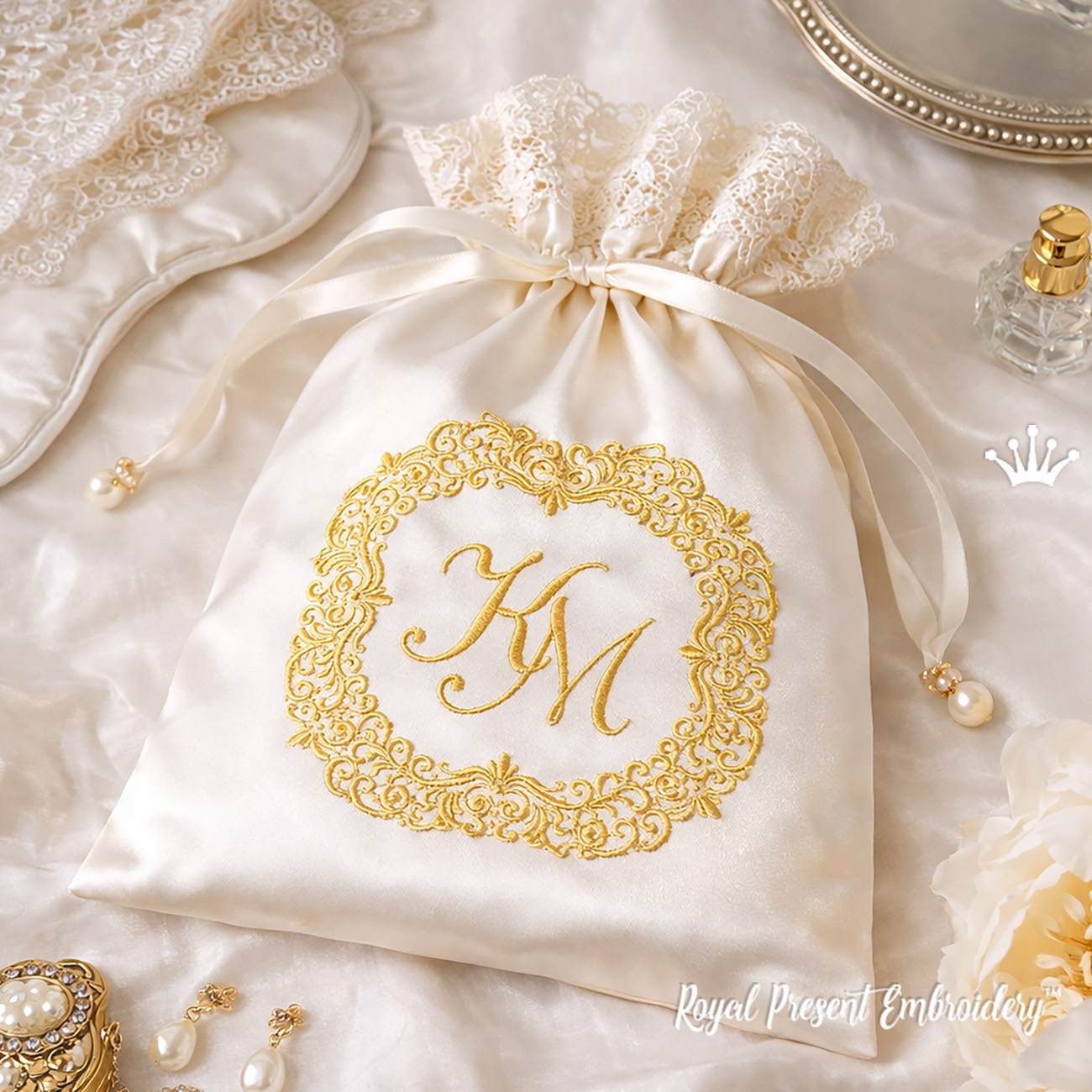 Этот дизайн идеально подходит для персонализации и сочетания с коллекцией Свадебные дизайны машинной вышивки.