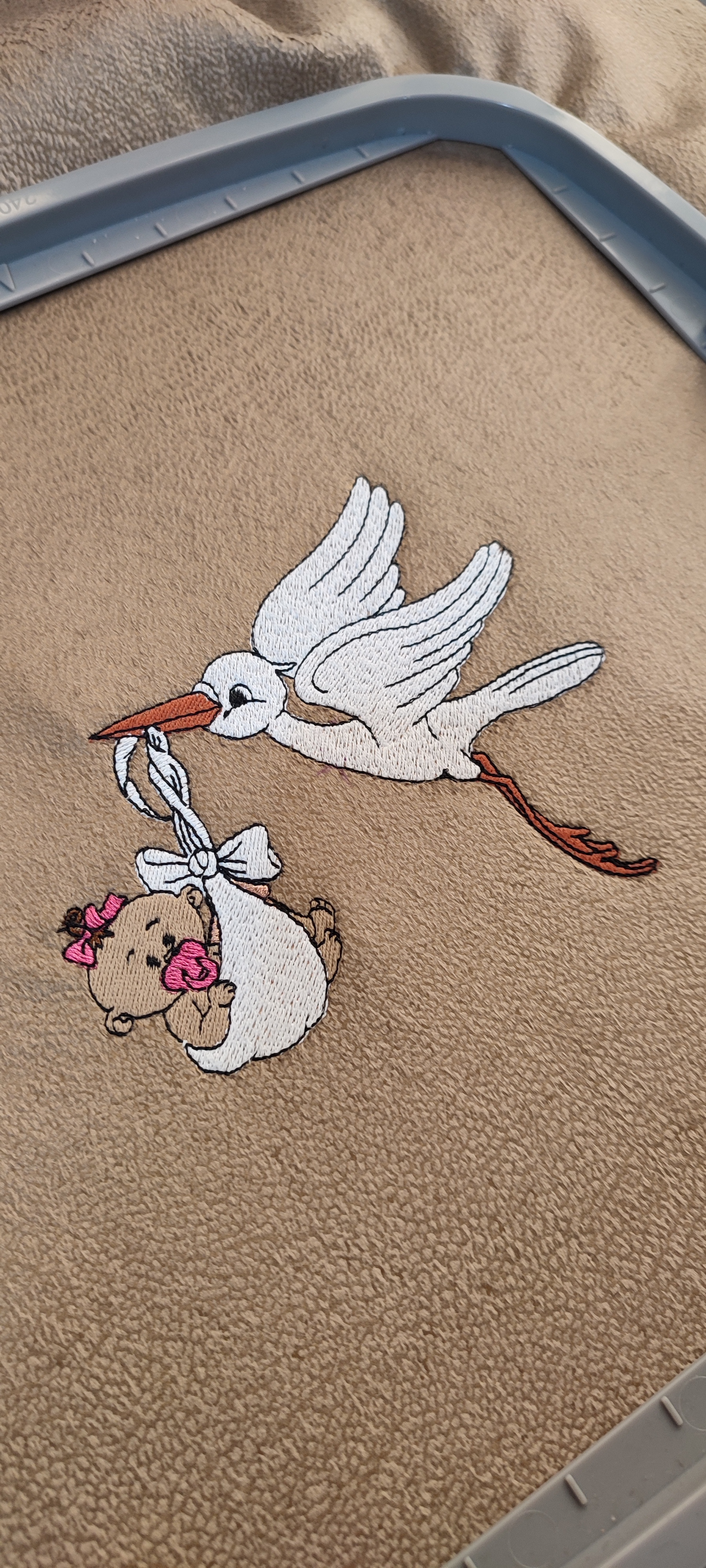 Дизайн для машинной вышивки Аист поможет любящей матери создать нечто уникальное и весьма интересное для своего ребенка. Это простой способ, что послужит для преображения каких-либо предметов быта. Можно добавить такую вышивку на детское постельное белье, чтобы аист с милым малышом защищал сон вашего ребеночка. Разместите этот забавный дизайн на полотенчике или салфетке, выделив таким образом вещицы вашей дочери или сына.