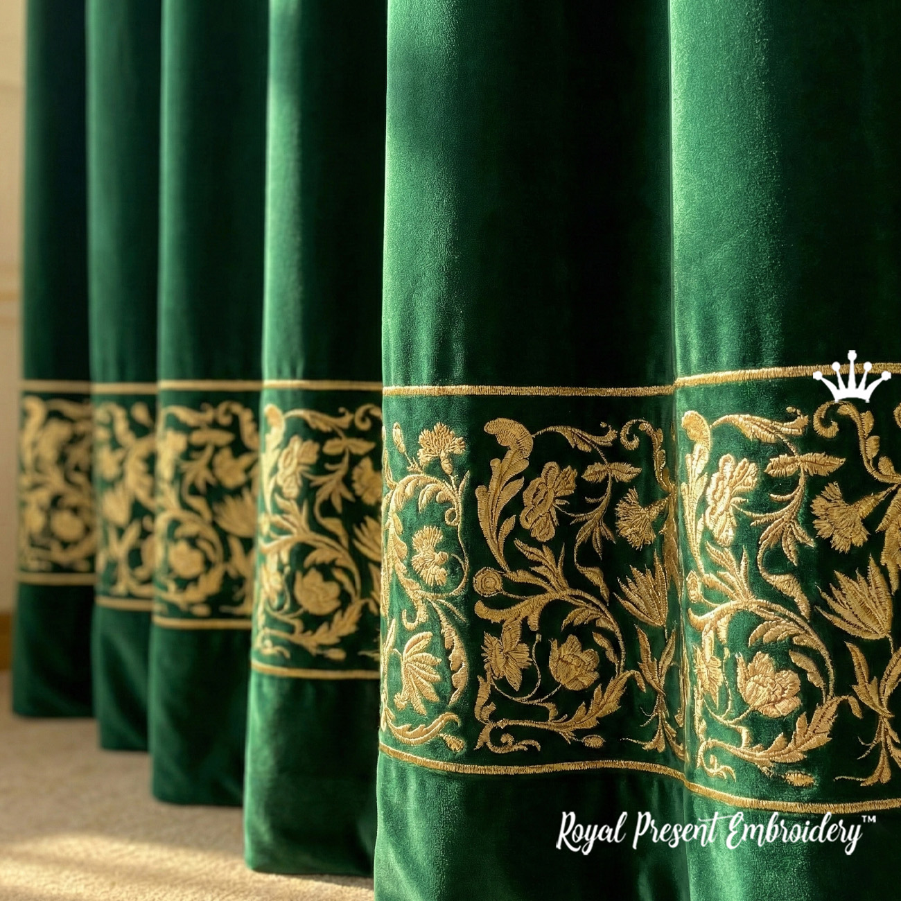 Барокко Витиеватый цветочный бордюр Дизайн машинной вышивки. С помощью удобных стыковочных меток вы сможете всего из одного элемента получить полноценный БОРДЮР для текстиля любой ширины. Резные листья и нежные цветы разместятся на шторах, скатертях, полотенцах или постельных принадлежностях, чтобы привнести в интерьер вашего дома очарование цветущего сада.