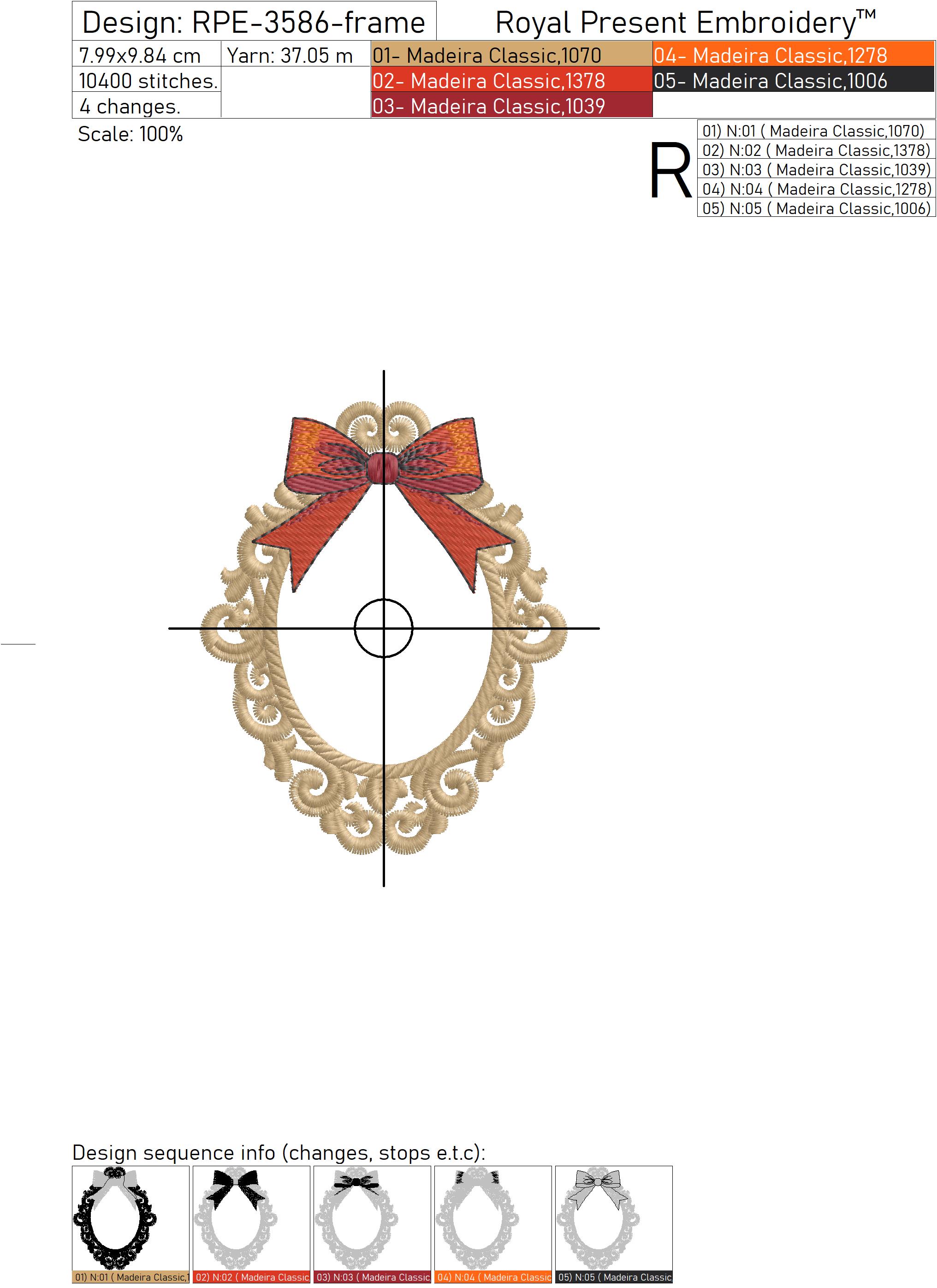 Барокко рамка с бантом — дизайн машинной вышивки, созданный для элегантного текстильного декора. Особенно эффектно он смотрится на льняных кухонных полотенцах и зимних праздничных изделиях. Плавные завитки и декоративный бант создают утончённую композицию, которая добавит роскоши в каждое изделие. Дизайн подходит для пялец 100x100 мм (4x4 дюйма).
