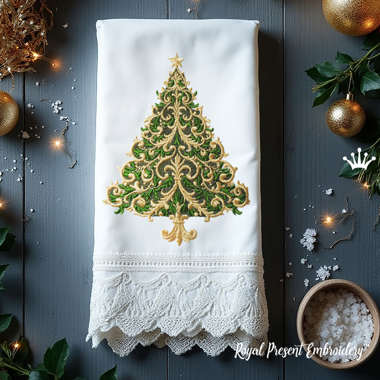 Элегантная Барочная Ёлка — это не просто вышивка, а настоящее праздничное украшение, которое вдохновит вас на новые творческие идеи и станет ярким акцентом ваших рождественских изделий. Есть компаньон Елка Барокко стиль дизайн машинной вышивки