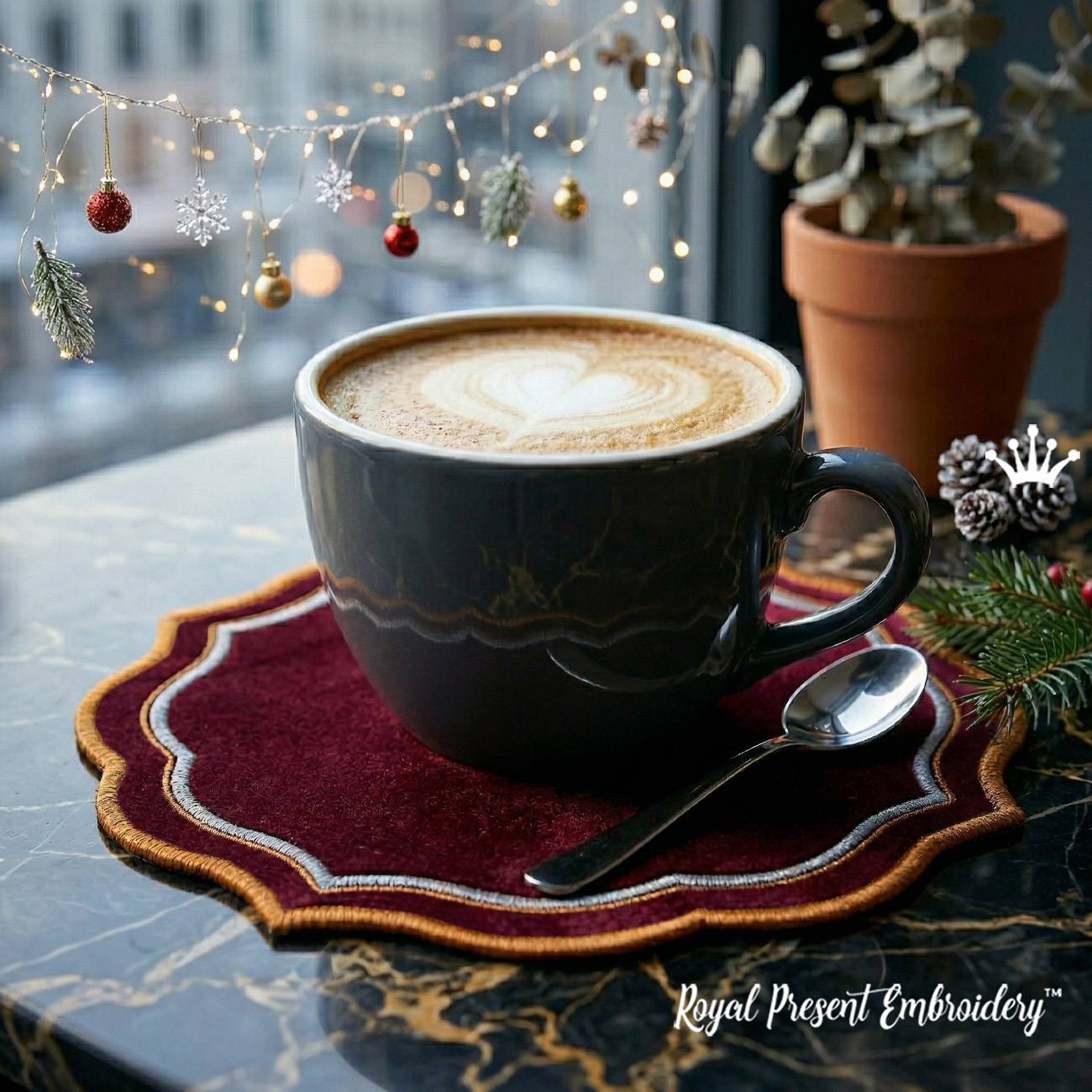 Фигурная подставка под кружку — это дизайн вышивки для создания красивой текстильной подставки под чашку, кружку, кофе или чай. Такой аксессуар отлично подходит для уютной сервировки, новогоднего декора и подарков, а также может использоваться как декоративная мини-салфетка под чашку или костер на стол. Дизайн подойдет тем, кто ищет подставку под кружку своими руками, подставку под чашку для сервировки или оригинальный дизайн машинной вышивки для дома. В этой серии есть и большая версия — Фигурный ланчмат для сервировки стола.