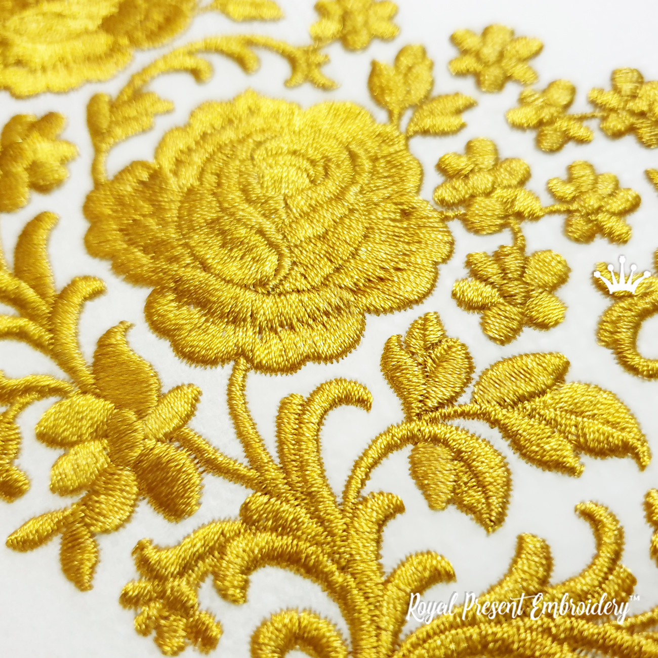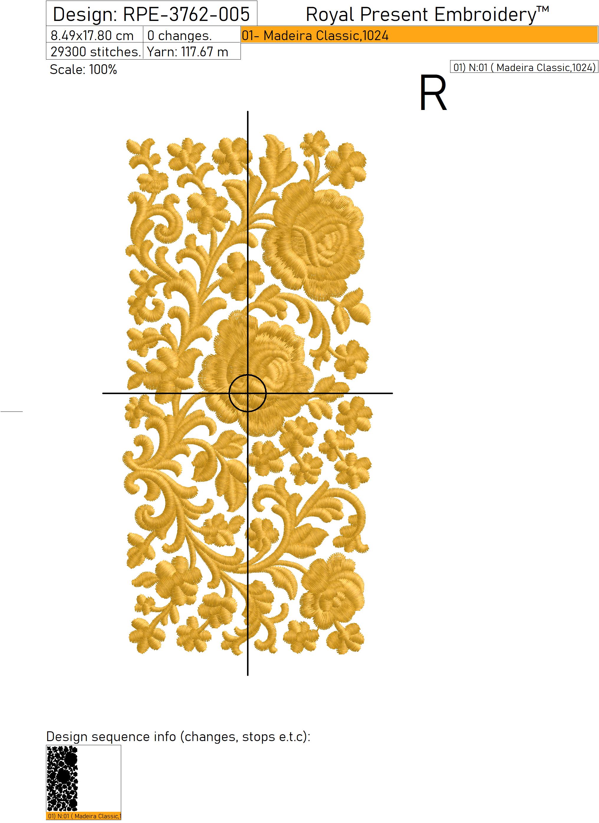 Дизайн входит в серию и может использоваться вместе с Фрагмент Бордюра розы квадратный дизайн машинной вышивки. Совместное применение прямоугольного и квадратного элементов позволяет создавать гармоничные комплекты и выдержанные по стилю композиции.