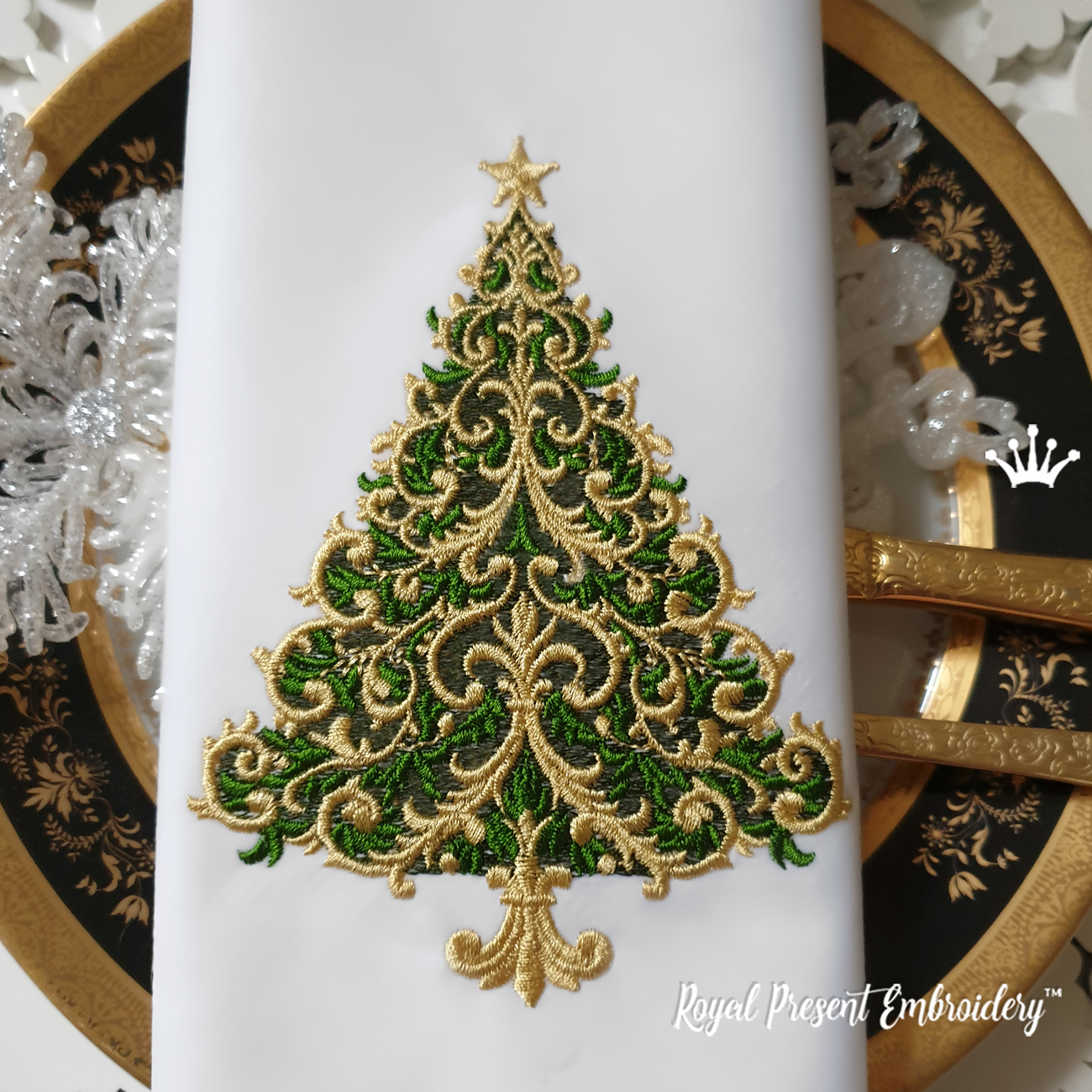 Подарите своим текстильным изделиям атмосферу торжественной роскоши с этим дизайном в винтажном стиле. Изящные барочные узоры и шикарная звездочка на вершине создают визуальную глубину и богатство. Этот дизайн является отличным компаньоном к коллекции «Елка Барокко стиль» — используйте оба варианта для полноценного праздничного набора.