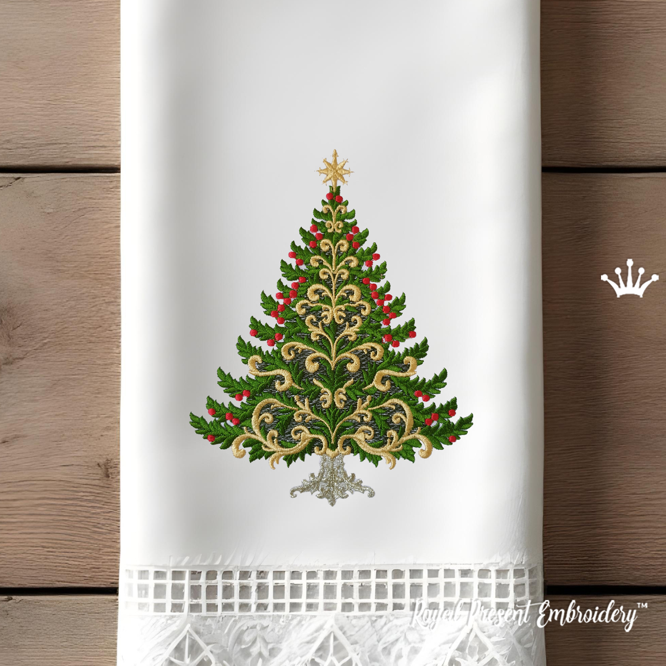 Елка Барокко стиль — дизайн машинной вышивки с роскошными завитками и стильным силуэтом и изящными орнаментами в винтажной тематике. Мгновенное скачивание