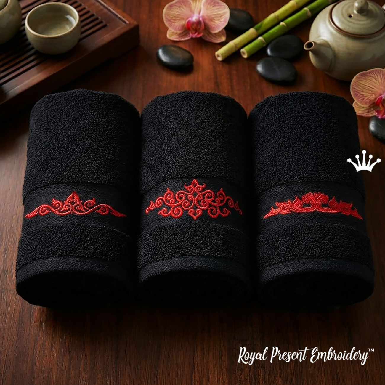 Китайский монохромный набор бордюров дизайны машинной вышивки — это изящный комплект из трёх бордюрных элементов, выполненных в восточном стиле. Подходит для пялец 100x100 мм (примерно 4x4 дюйма). Идеален для украшения полотенец, дорожек, салфеток и кухонного текстиля.