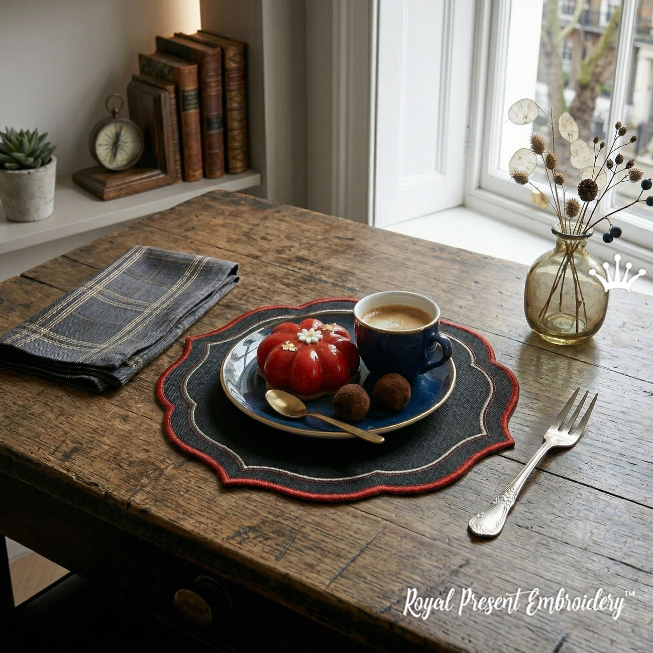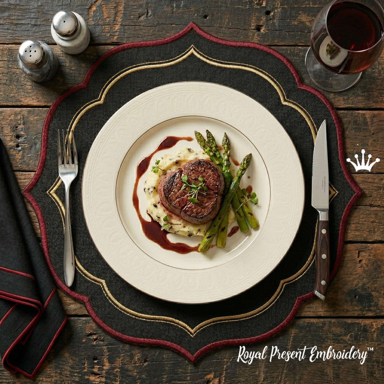 Фигурный ланчмат для сервировки стола — дизайн машинной вышивки в 9 размерах для красивой и эффектной подачи. Идеально подходит под большие и десертные тарелки, для праздничного и повседневного стола.