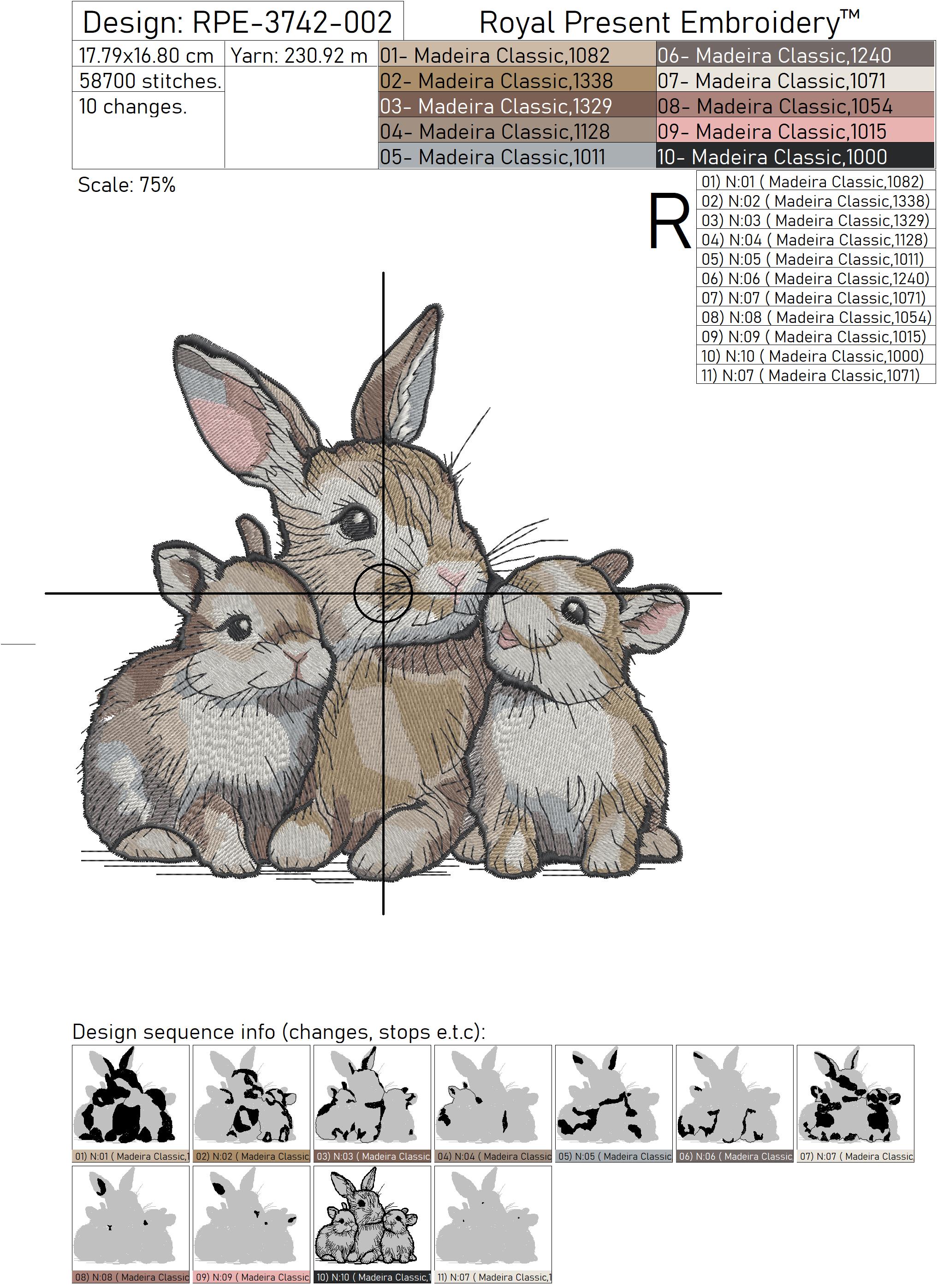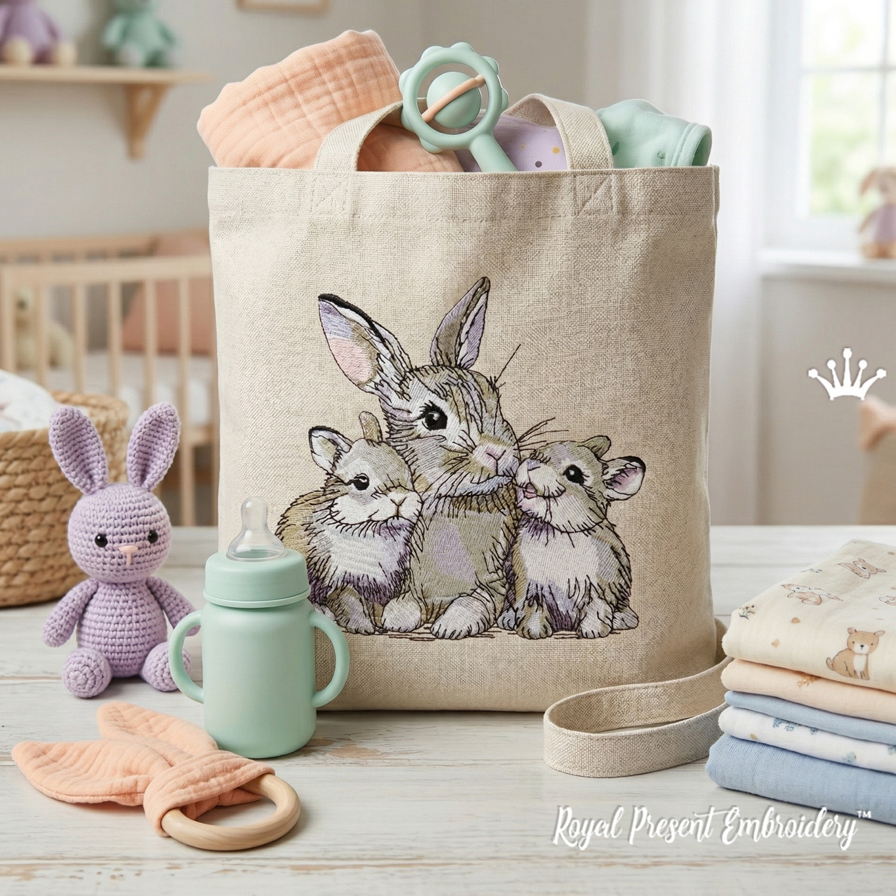 Кролик Мама и Крольчата — нежный дизайн машинной вышивки с тёплым семейным сюжетом, который прекрасно подойдёт для детских вещей и уютного домашнего декора. Трогательная композиция с мамой-зайкой и крольчатами создаёт мягкое, доброе настроение и особенно красиво смотрится на натуральных тканях.