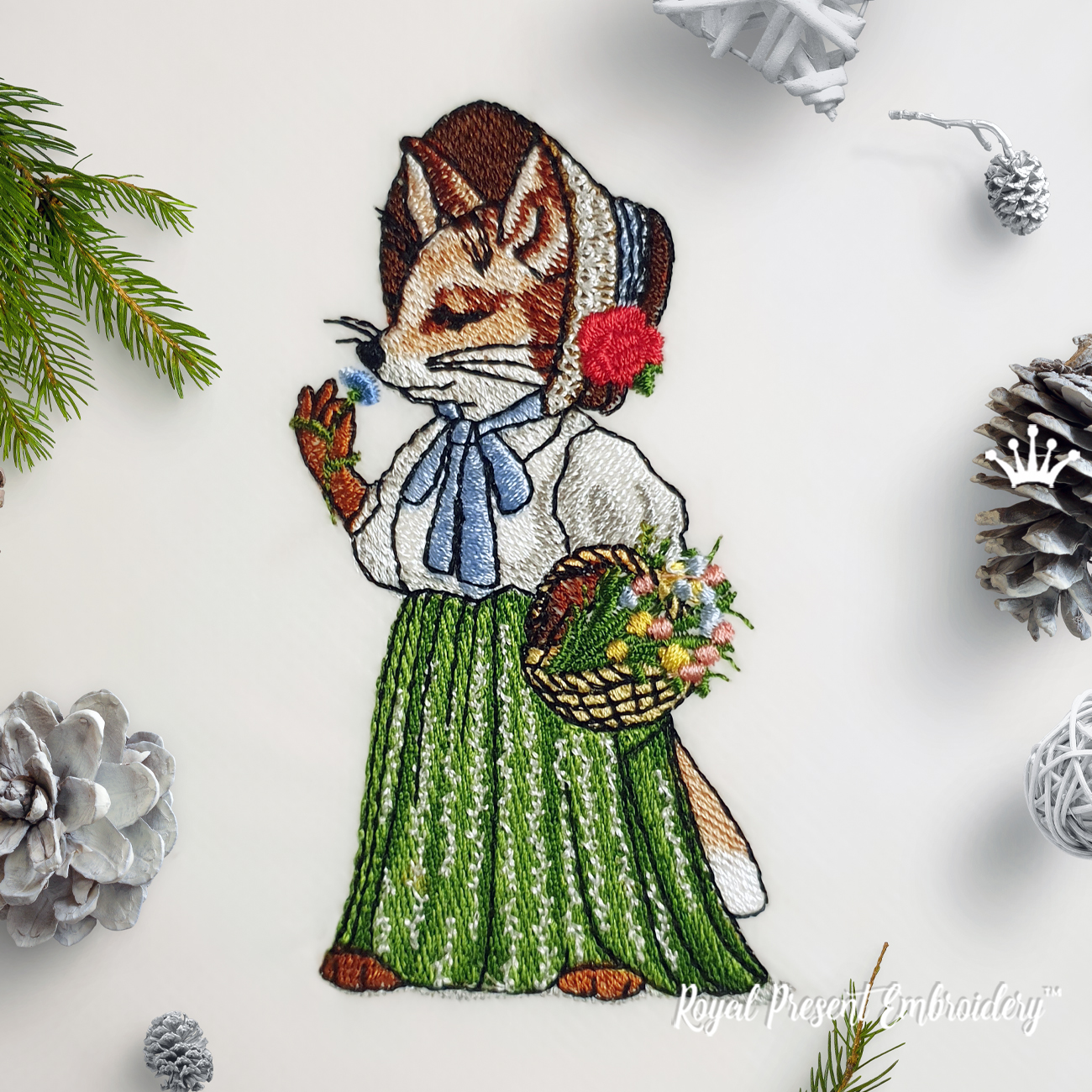 Мама Лиса Леди — изысканный и добрый дизайн машинной вышивки, в котором элегантная лисичка в платье и шляпке несёт уют и стиль в каждый проект. Идеально подходит для украшения подушек, детской одежды, фартуков и текстиля для дома. Подходит для пялец 5x7 дюймов. Коммерческая лицензия включена — можно использовать для создания изделий на продажу.