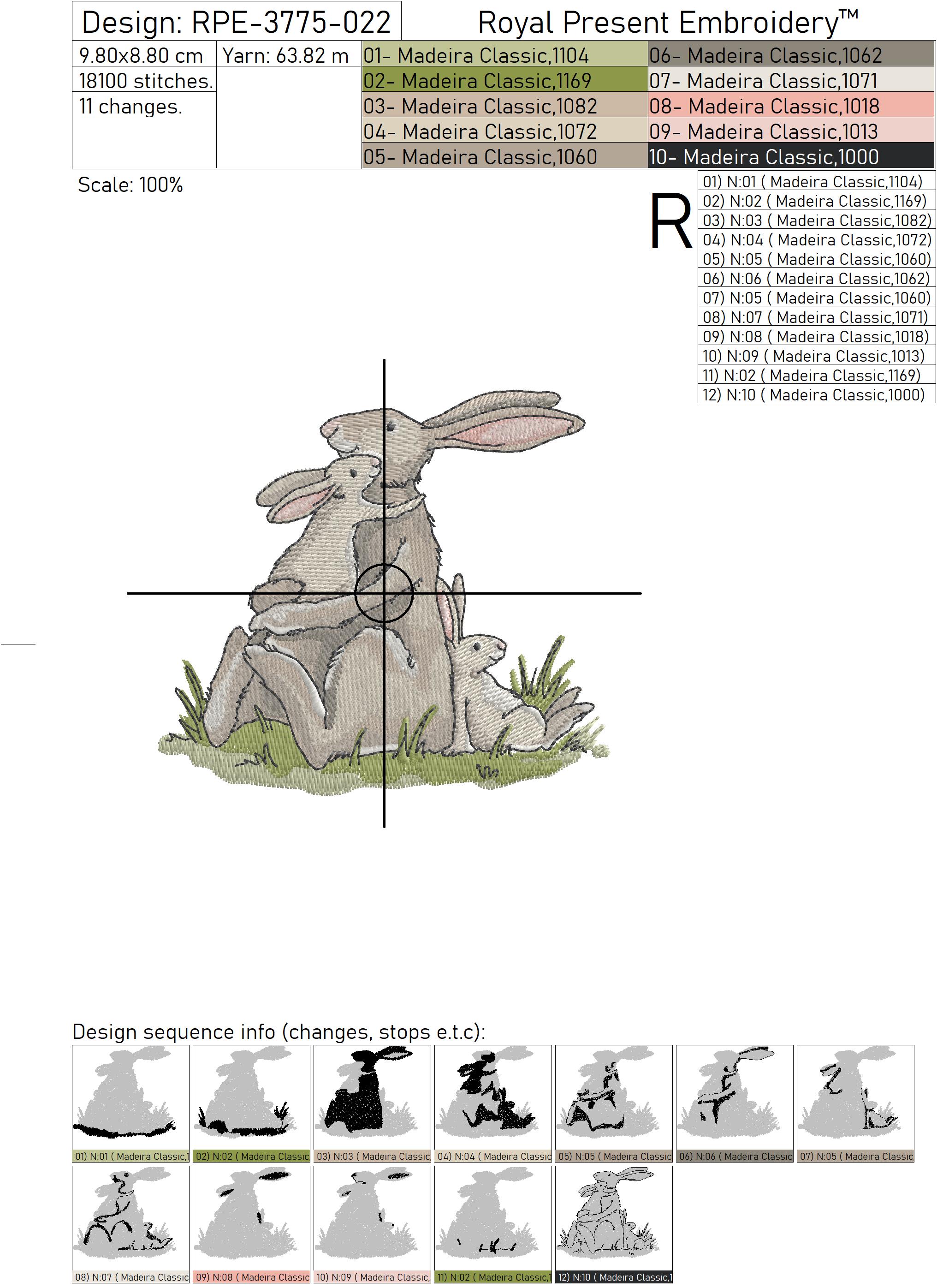 Дизайн с семьёй зайцев выполнен с аккуратной проработкой деталей и мягкими оттенками, что делает его универсальным для вышивки на хлопке, льне и других тканях. Подходит для вышивальных машин различных форматов, файлы включают популярные расширения, мгновенная загрузка после покупки. Отличный выбор для тех, кто ищет дизайн вышивки зайцы, мама и детёныши, кролики детский дизайн, пасхальная машинная вышивка.