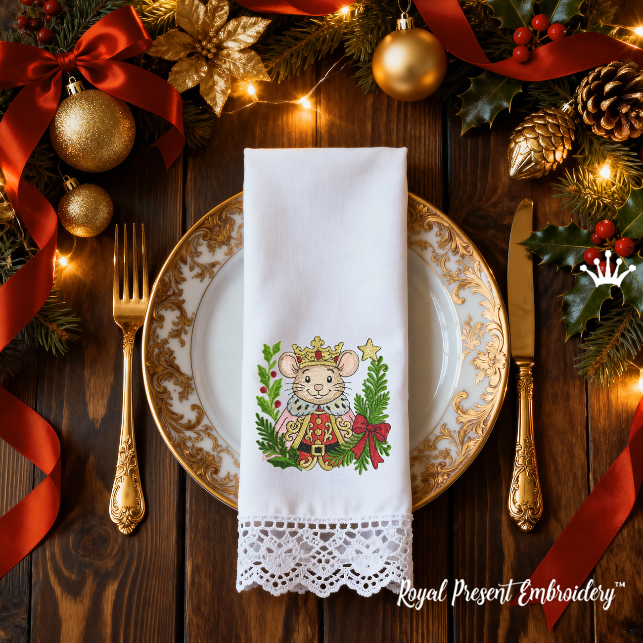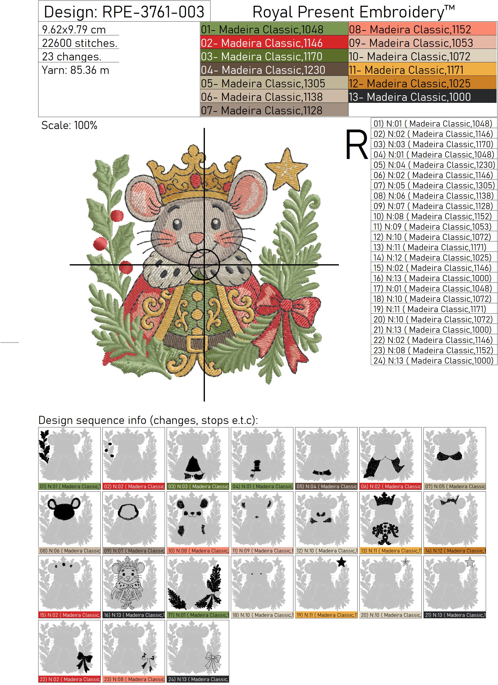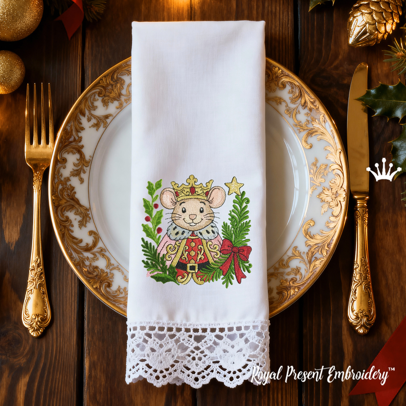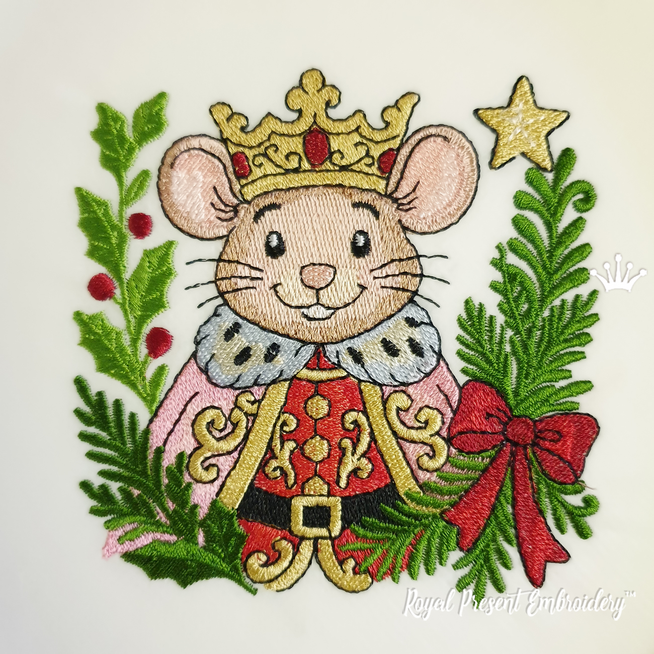 Этот яркий и забавный дизайн машинной вышивки изображает Мультяшного Мышиного Короля в выразительном комичном стиле. Его мультяшные черты, корона и королевская поза добавляют проектам весёлое настроение. Дизайн выполнен в современном декоративном стиле, прекрасно подходящем для детского текстиля, праздничных изделий и подарков.