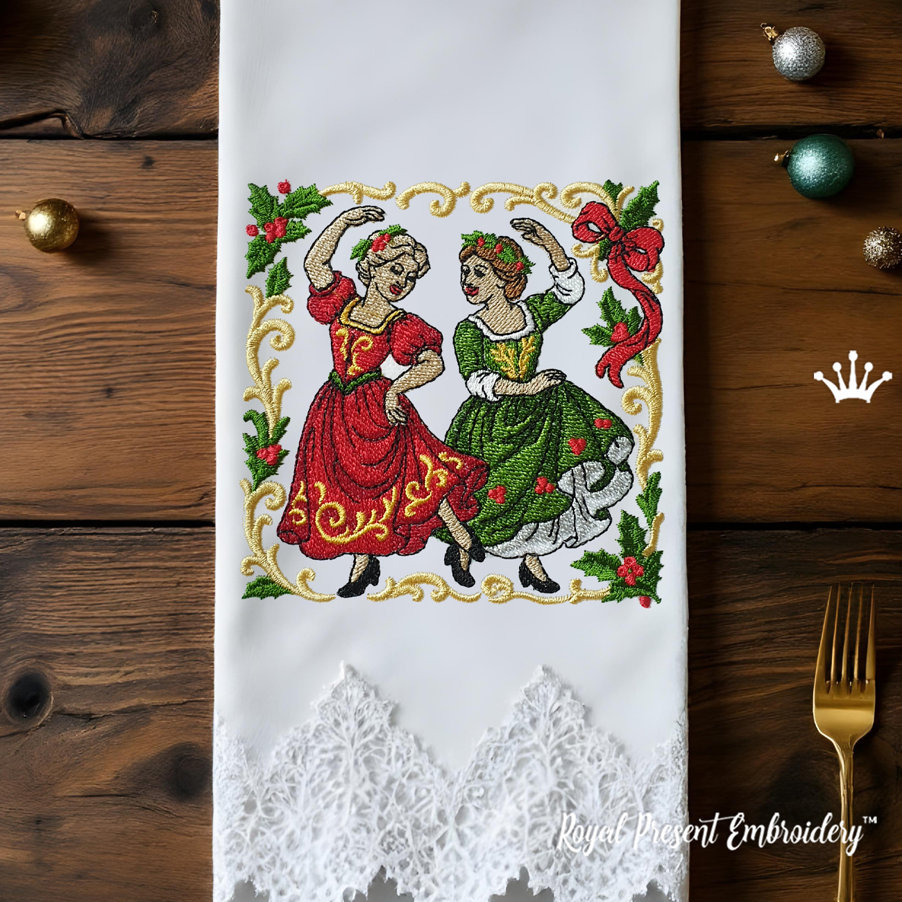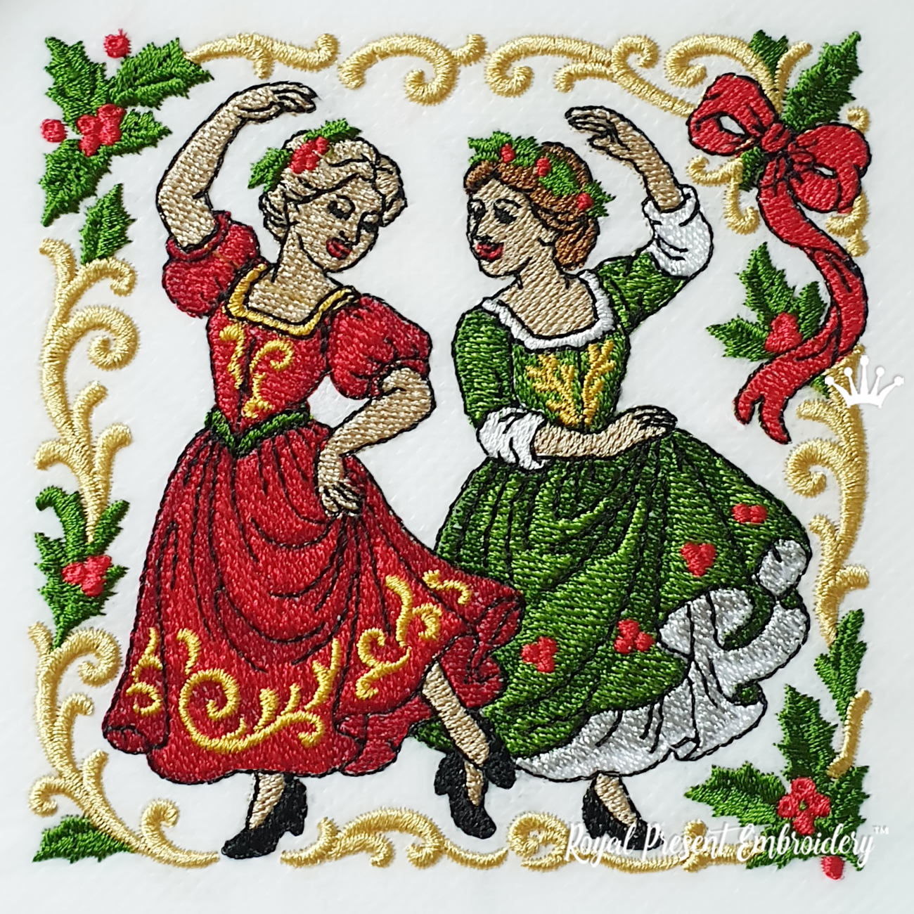 Новогодние танцующие девушки дизайн машинной вышивки идеально смотрится на: