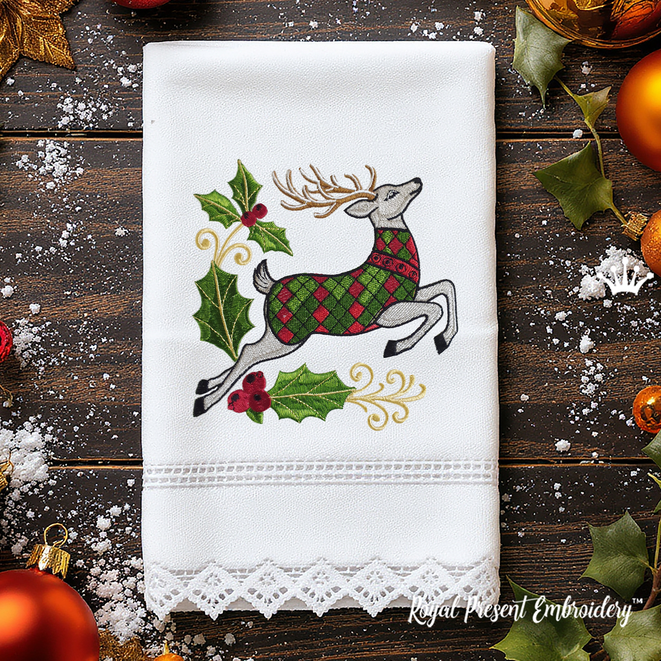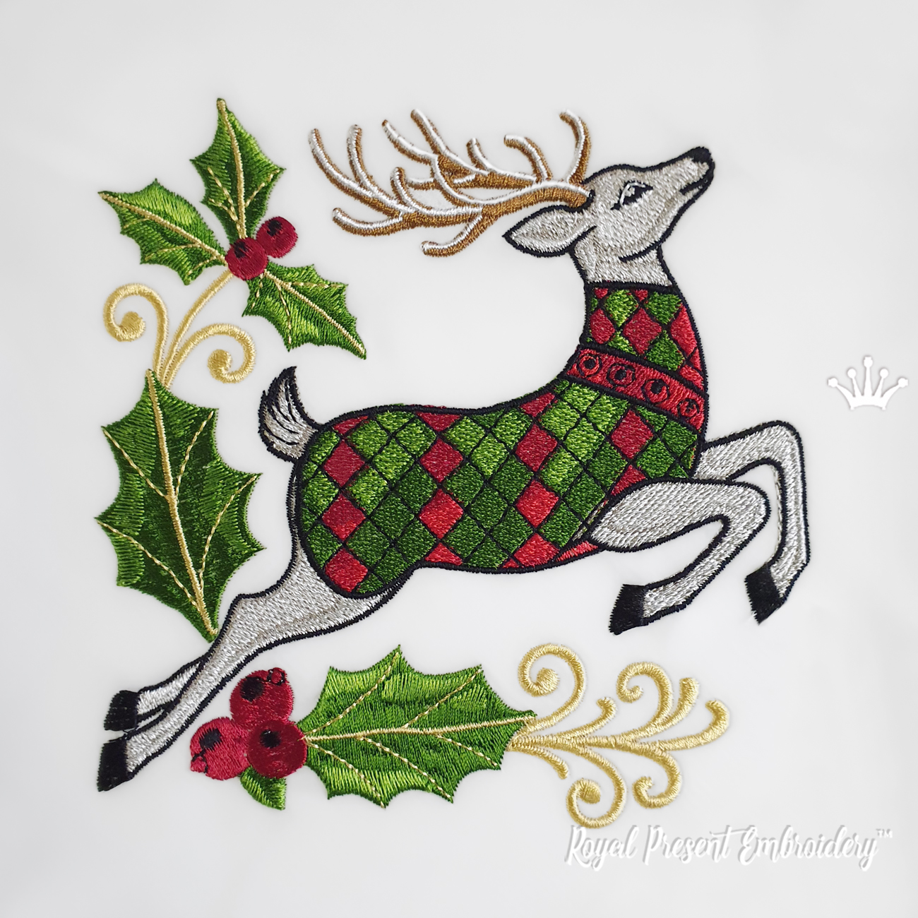 У этого дизайна есть компаньон Олень с бантом и колокольчиком в клетку