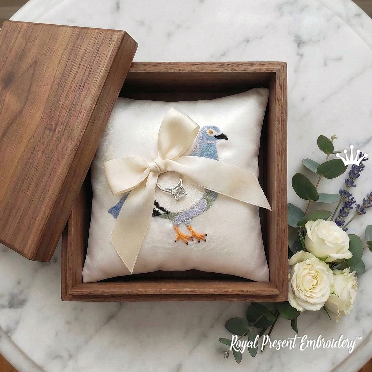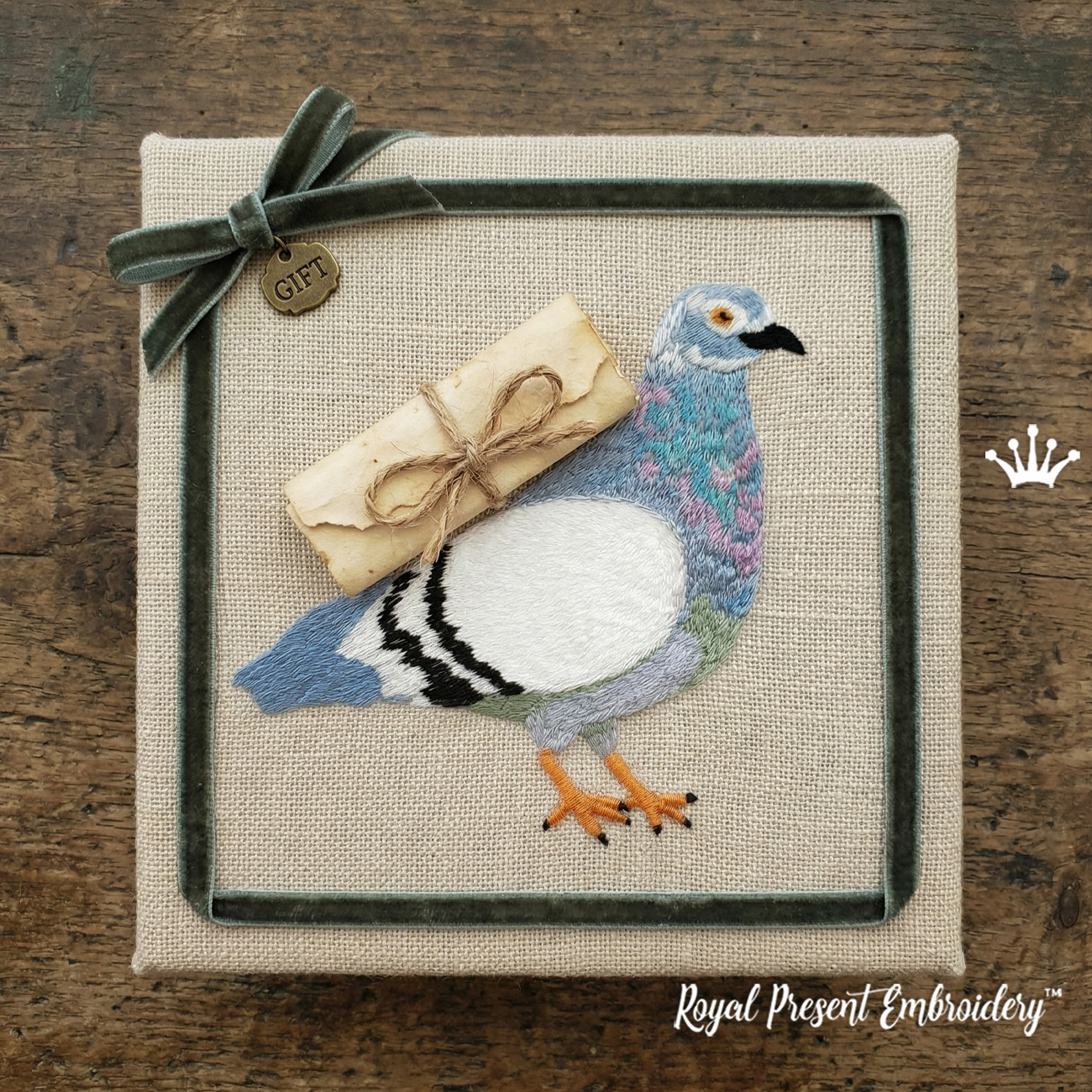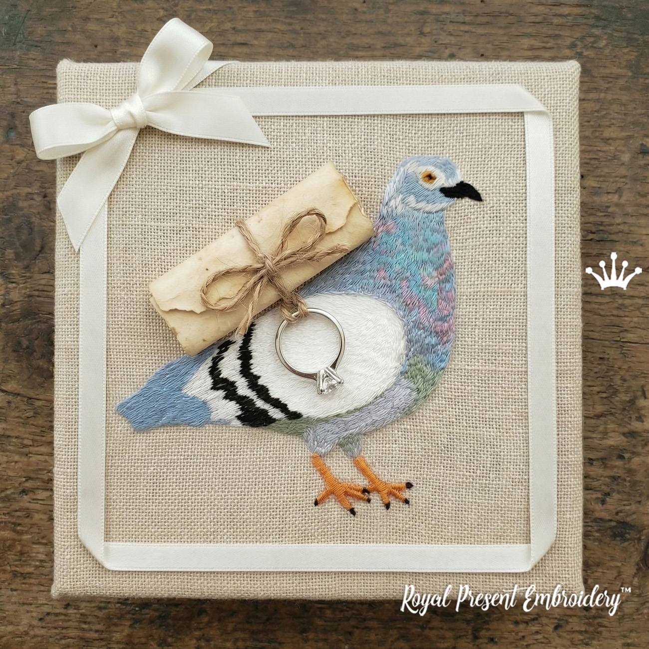 Этот дизайн машинной вышивки создан не просто как красивая птица с письмом, а как необычная идея для подарка и оформления памятного момента. Свиток на спине голубя можно обыграть в реальном подарке: вложить маленькое письмо, признание в любви, свадебную клятву, пожелание или важное личное послание.