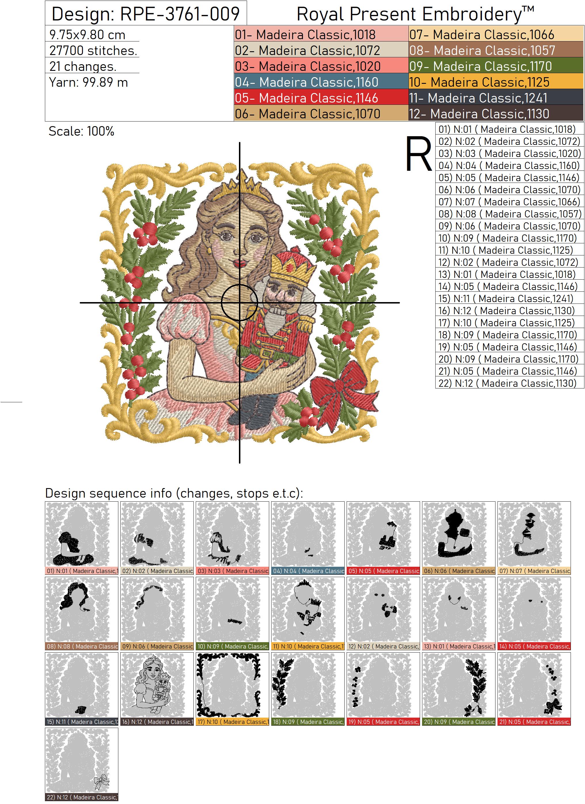 Сказочный и трогательный дизайн машинной вышивки «Рождественская Мари и Щелкунчик» вдохновлён классической рождественской историей и выполнен в традиционном праздничном стиле. Нежные линии, выразительные силуэты и компактная композиция делают этот дизайн особенно уютным и душевным. Он идеально подходит для зимних проектов, подарков и детского текстиля. В качестве дополнения вы можете использовать дизайн компаньон Мари балерина дизайн машинной вышивки, чтобы создать гармоничный рождественский набор.