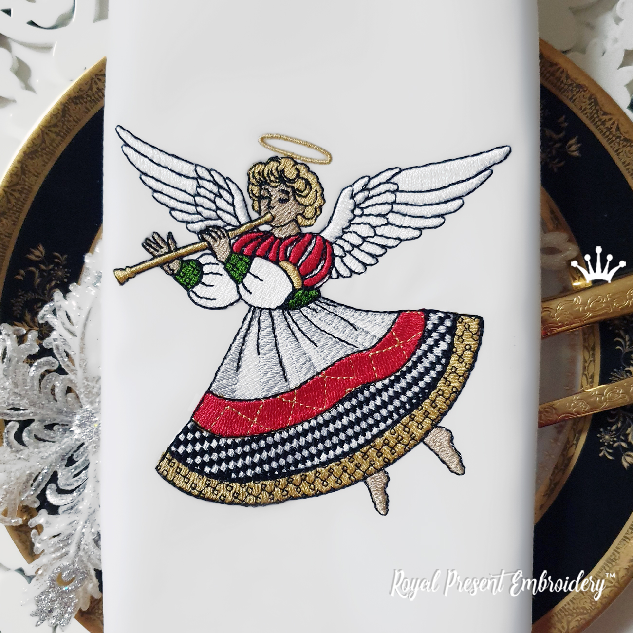 Очаровательный Рождественский Клетчатый Ангел с флейтой выполнен в уютном винтажном стиле с акцентом на праздничную атмосферу. Этот нежный сюжет сочетает в себе тепло зимних праздников, традиционный клетчатый орнамент и тонкую проработку деталей. Он станет великолепным украшением ваших новогодних проектов.