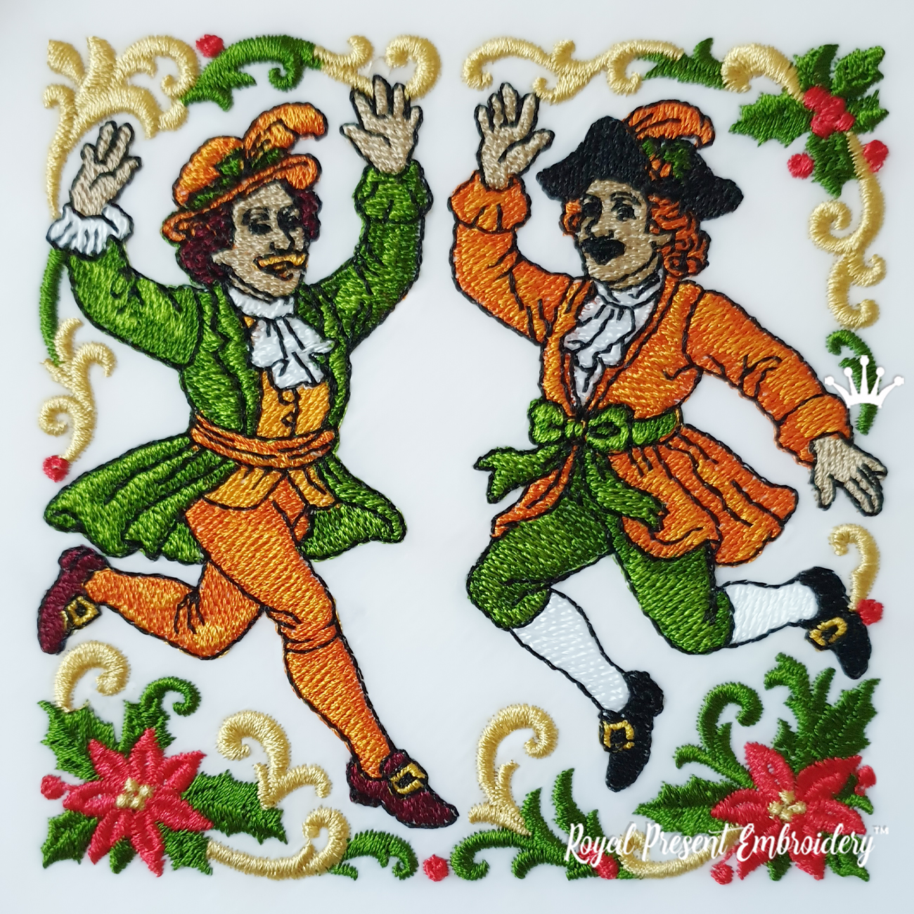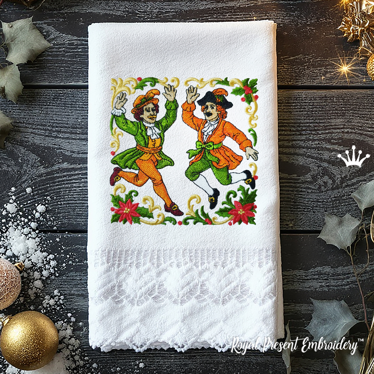 «Прыгающие Лорды» дизайн машинной вышивки — это изящный праздничный мотив, созданный для украшения зимнего текстиля. Он добавит утончённости кухонным полотенцам, салфеткам, декоративным мешочкам и даже элементам лоскутного шитья.
