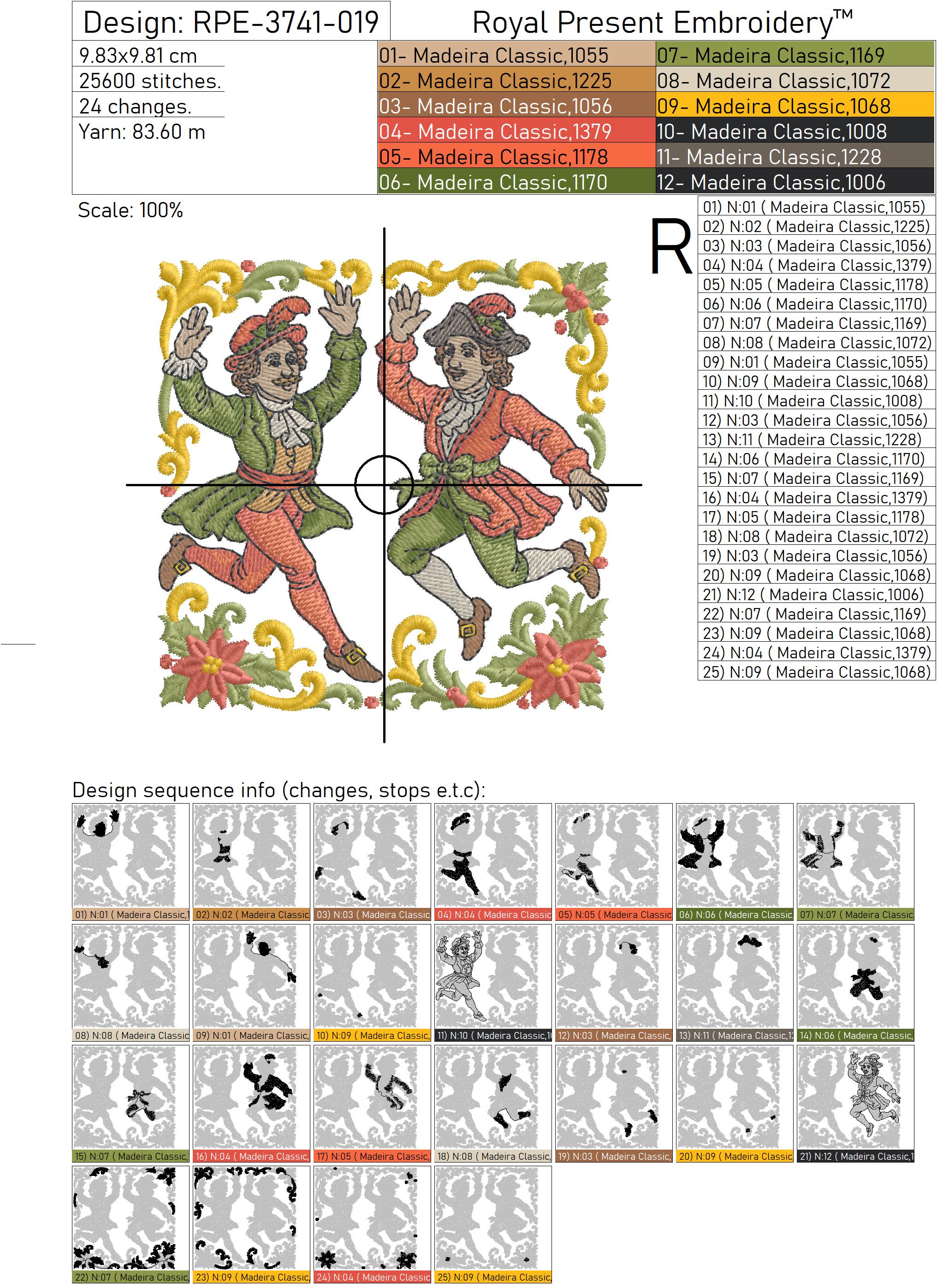Дизайн рассчитан на пяльца 100х100 мм (приблизительно 3.9 x 3.9 дюйма), что делает его удобным для большинства бытовых машин.