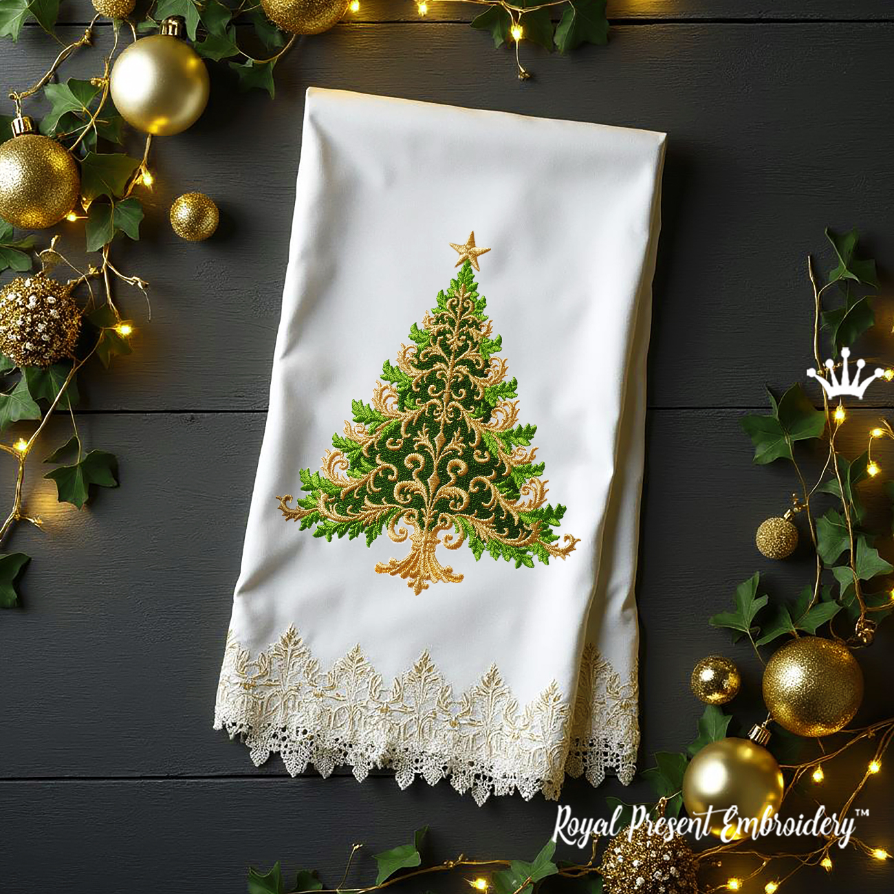 Погрузитесь в атмосферу рождественской роскоши с дизайном Стильная Елка Барокко со звездой. Этот изысканный дизайн машинной вышивки выполнен в барочном стиле: утончённые завитки, гармоничные линии и золотистая звезда придают ему королевский вид. В нём идеально сочетаются винтаж и праздничная элегантность.