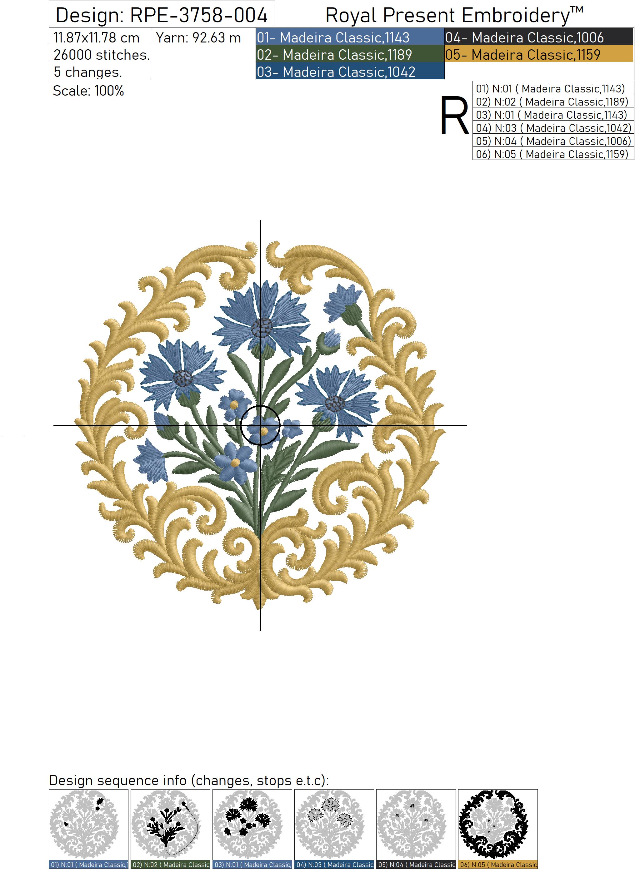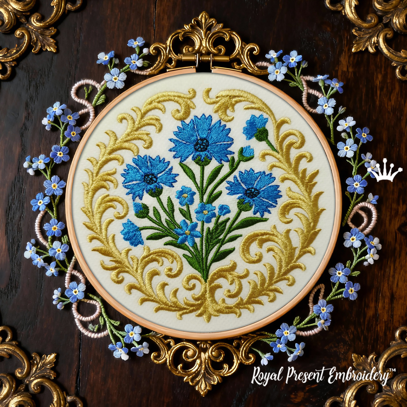 Элегантный круглый орнамент с барочными завитками и нежными васильками создаёт утончённый акцент на любом изделии. Дизайн выполнен в изысканном барокко-цветочном стиле с чёткой глубиной и декоративной динамикой. Идеально сочетается с дизайн компаньон Васильки барокко круг, позволяя создавать полноценные комплекты для дома и подарков.