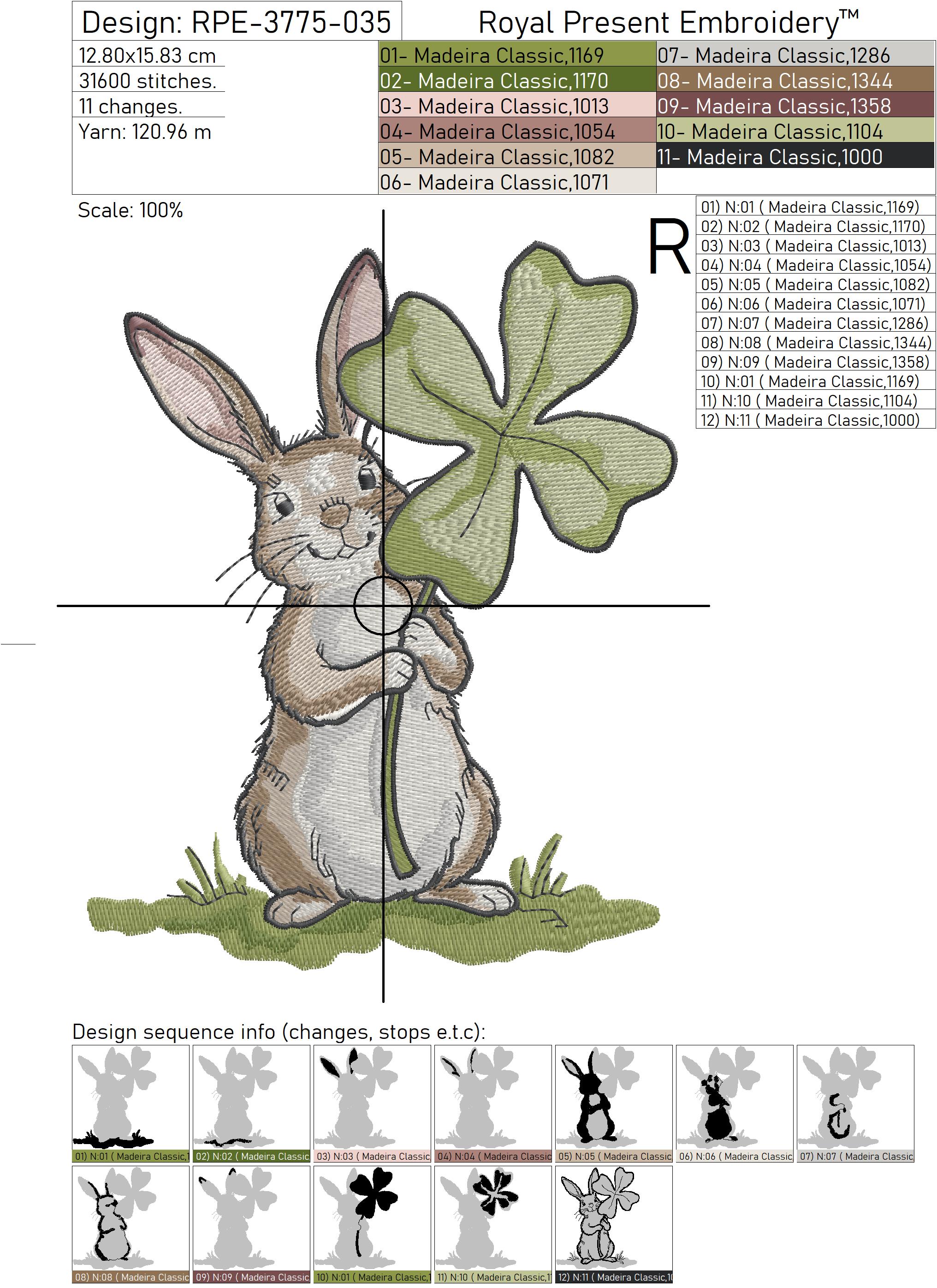 Создайте уютную атмосферу и добавьте нотку удачи в ваш дом с этим милым дизайном вышивки! Есть Кролик с клевером поменьше для пялец 100х100 мм