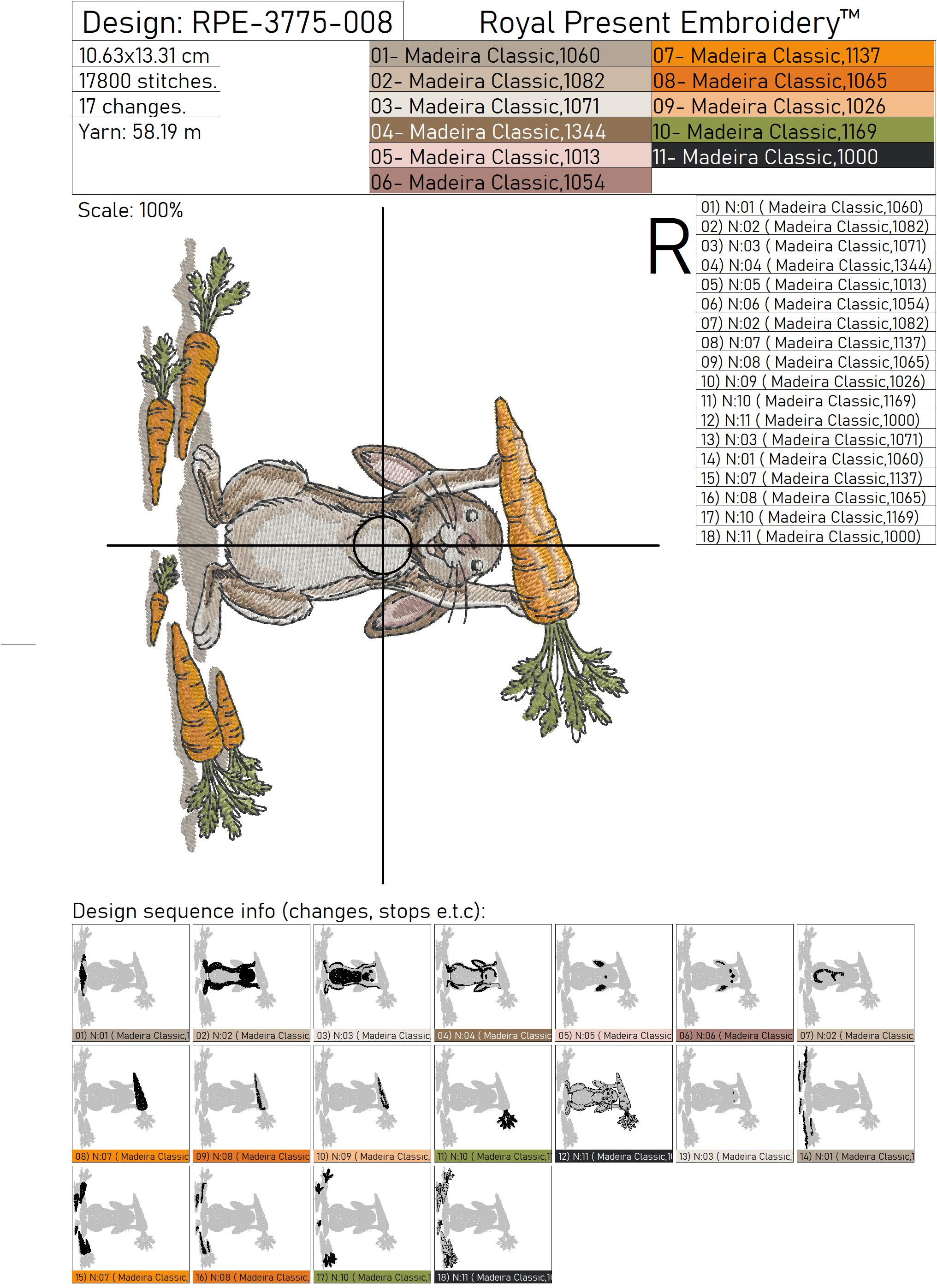 Идеи для применения: Благодаря небольшому размеру и продуманной оцифровке, этот милый кролик с морковкой отлично смотрится на самых разных изделиях: