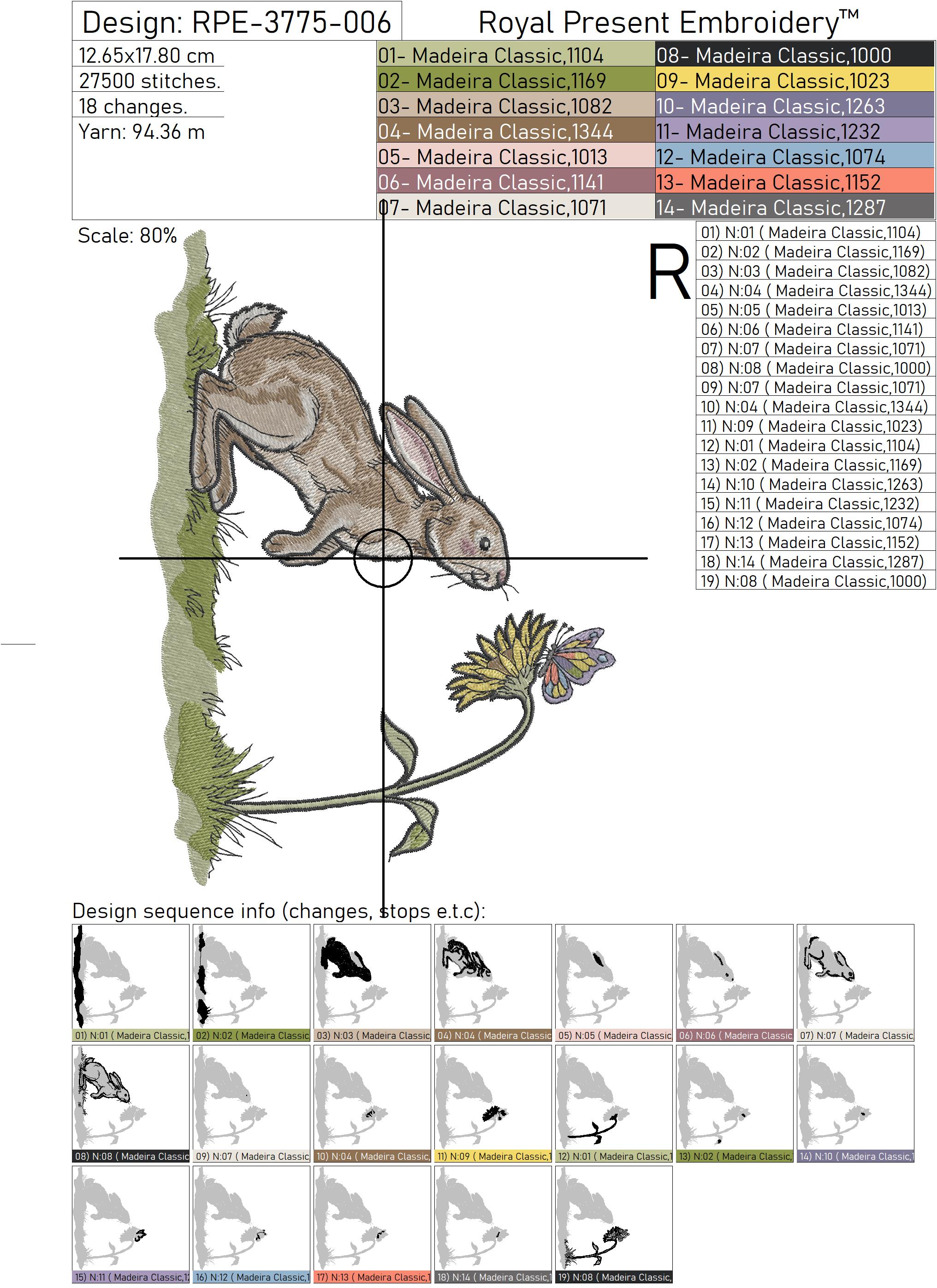 Детальная оцифровка обеспечивает чёткие контуры, плавные переходы оттенков и аккуратную плотность стежков. Это важно для тех, кто ценит качественную машинную вышивку, реалистичный дизайн зайчика и аккуратный цветочный мотив.