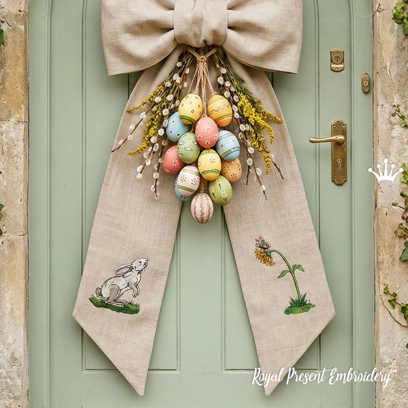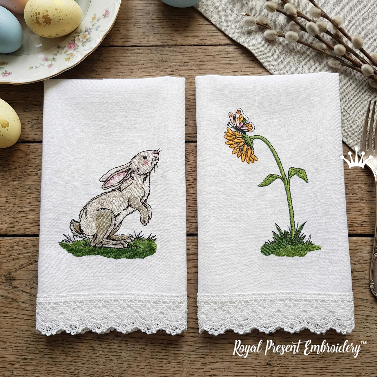 Нежный весенне-летний набор дизайнов машинной вышивки с реалистичным зайчиком, солнечным подсолнухом и лёгкой бабочкой. Композиции выполнены в деликатной палитре и идеально подходят для декоративного текстиля, сервировочных салфеток, полотенец, детского текстиля и уютного farmhouse-декора.